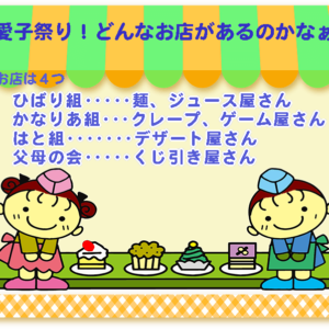 2020年10月16日(金) / Last updated : 2020年10月19日(月) あやしようちえん 行事 いよいよ愛子祭り! いよいよ愛子祭り! 19日は、年長組のお店屋さんごっこ、そして、20日は年長組と父母の会のお店屋さんに年中組、年少組が買い物に行きます。新型コロナウイルスの感染防止対策のため、「密」を避ける配慮があり、例年の内容よりも縮 […]