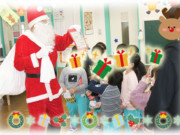 お部屋でクリスマスの歌を歌ったり、踊りを踊ったりしていると、鈴の音がなりサンタさんの声が聞こえてきました。サンタさんが幼稚園に来てくれました!
