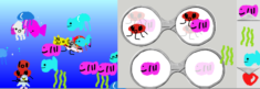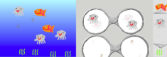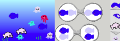 プログラミングといっても難しいものではなく、今回は「ビスケット」で自分で海の生き物の絵を描き、描いた絵に動きを命令して海の中を泳がせてみました!