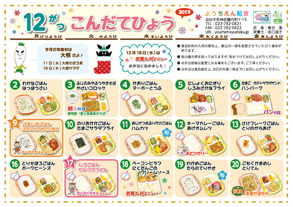 詳しいメニューは、行事予定表の給食メニューをご覧下さい。